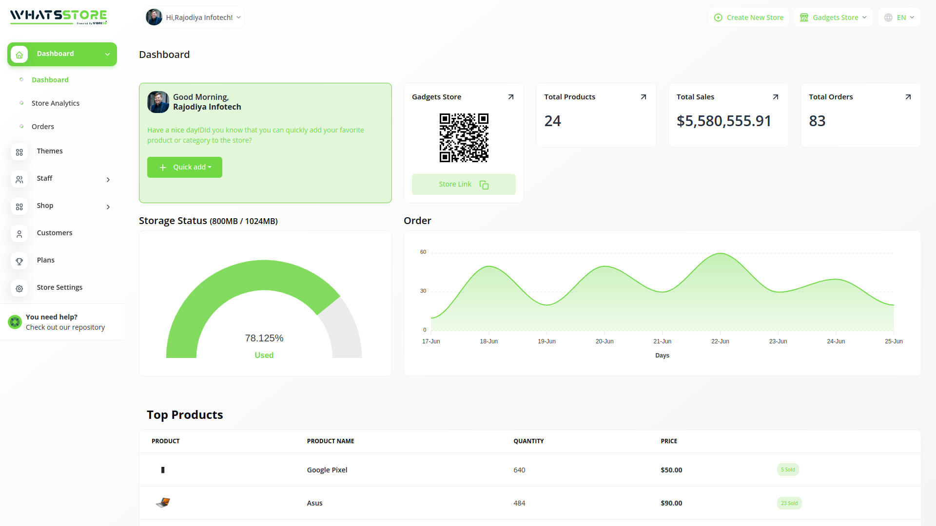 WorkDo seCommerce package offers you a “sales-ready.”secure online store. The package puts all the key pieces together, from design to payment processing. This gives you a headstart in your eCommerce venture. Every store is built using a reliable PHP framework -laravel. Thisspeeds up the development process while increasing the store’s security and performance.Additionally, thanks to the accompanying mobile app, you and your team can manage the store on the go. What’s more, because the app works both for you and your customers, you can use it to reach a wider audience.And, unlike popular eCommerce platforms, it doesn’t bind you to any terms and conditions or recurring fees. You get to choose where you host it or which payment gateway you use. Lastly, you getcomplete control over the looks of the store. And if it lacks any functionalities that you need, just reach out, and let’s discuss customization possibilities